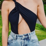 Costume intero con dettaglio cut out sul davanti con doppia bretellina regolabile